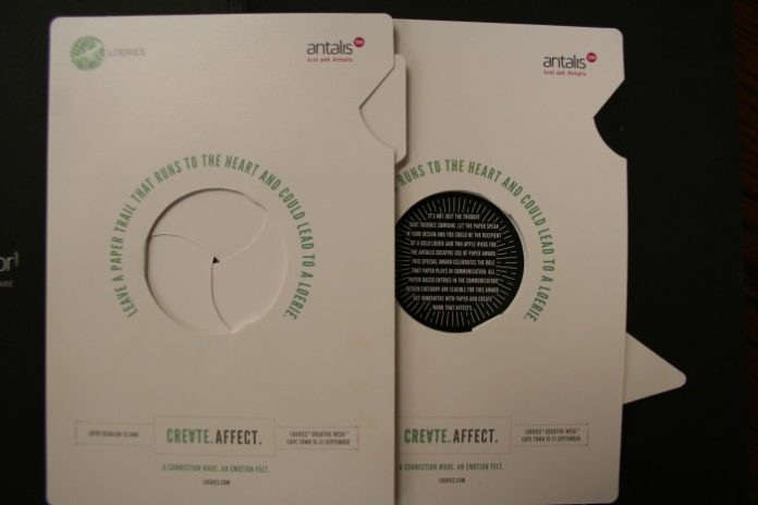 Caroline Coughlan, marketing manager Antalis, said that the award is important to the company because it highlights what can be achieved creatively with paper. ‘The Loeries are the highest local accolade for the creative industry and the company is proud to be a part of them. We believe the award encourages agencies to recognise that paper is ‘alive and well’ and can still be used creatively to achieve amazing results.