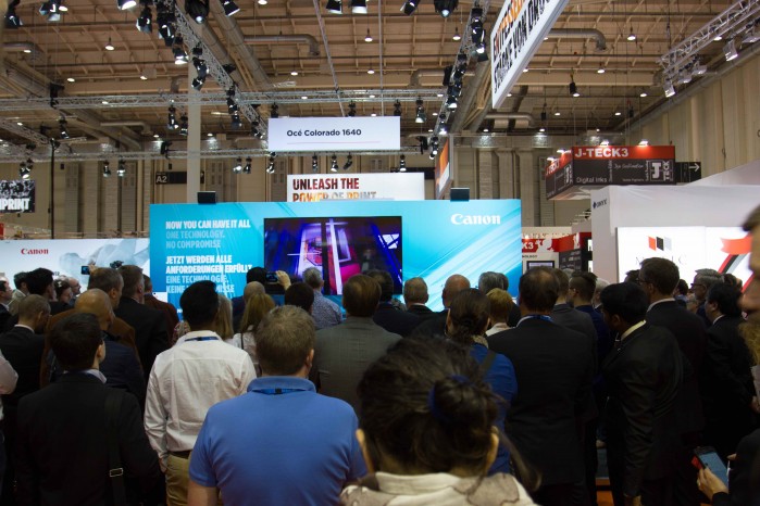 Whatever their individual focus at FESPA 2018, visitors will take inspiration from the technology developments and real-world applications on show at Canon. A prominent highlight of the stand will be the Océ Colorado 1640 roll-to-roll printer, built on Canon’s groundbreaking UVgel technology. Two separate printers will demonstrate the system’s exceptional productivity and media versatility across applications from high-value domestic and commercial décor to self-adhesives, with near-line finishing using technology from Canon partner Fotoba.