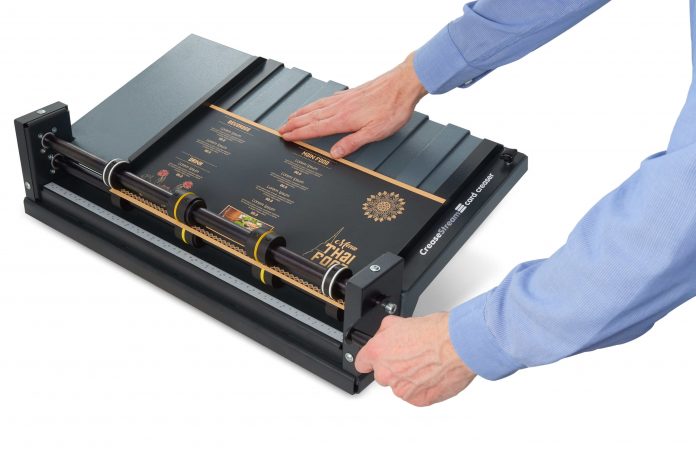 The product makes it possible to manually hand wind up to two creases simultaneously. The innovative creasing technology used in the CreaseStream Card Creaser Deluxe will produce excellent quality creasing that eliminates fibre cracking. It does this by making use of softer and patented creasing devices that gently manipulate and prepare the area of stock so that cracking does not occur during the folding stage, giving users the flexibility to produce either 4pp or 6pp book covers, greetings cards, menus, leaflets and brochures.