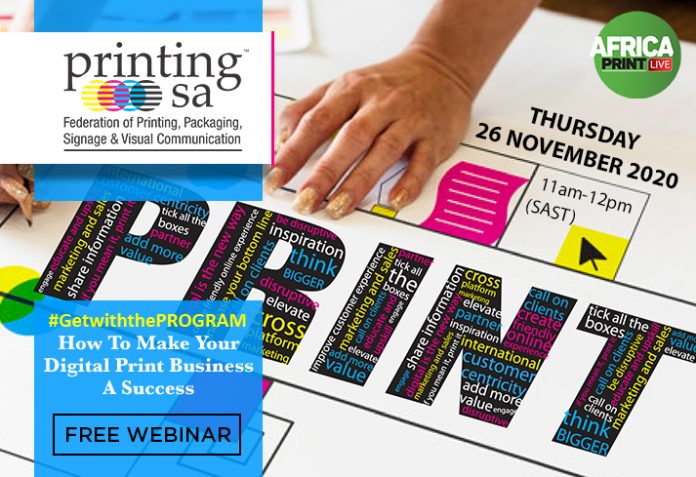 Watch this free webinar hosted by Printing SA on 26 November and be inspired by the panel of experts to thrive, disrupt and elevate digital print. Printers need to focus on marketing to be more customer-centric. Focusing on the experience and information customers have about their digital print services and solutions is key to increasing the bottom line.