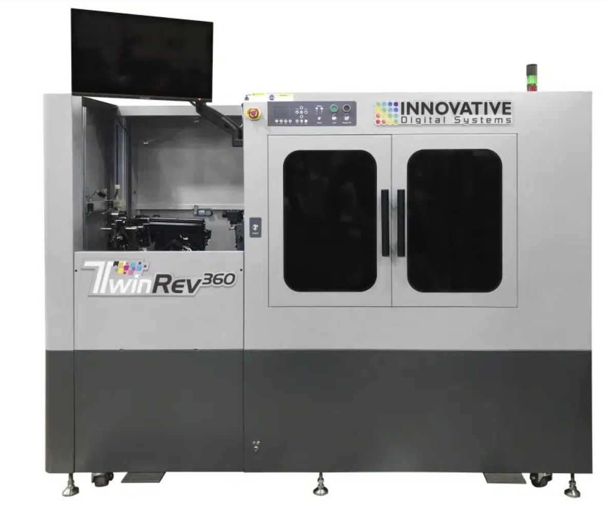 Innovative Digital Systems’ (IDS) has introduced the TwinRev 360 cylindrical printer. It features maximum part length and diameters.