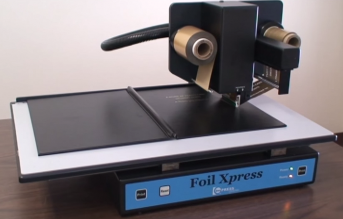 This newest version of Foil Xpress™ will automatically print hot foil onto leather, vinyl, plastic and paper items, including book covers (such as thesis papers) and finished books, photographs and photo mats, presentation and report covers, novelties and advertising specialty items. It is also suitable for ID cards, name badges, wedding albums, invitations and more.