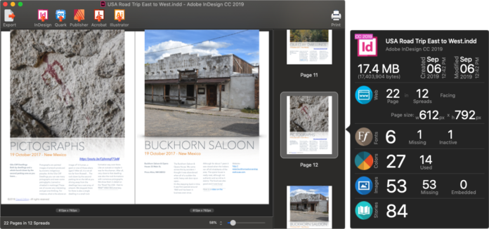 • Preview any Adobe InDesign file and view basic file info. Zoom previews and drag thumbnails from the preview area, to create a PDF of the page.