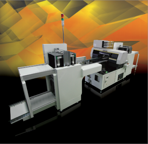 ProntROBO prints up to 1,800 dpi in full colour (with a minimum 4 picolitre drop size) and on materials up to 150mm in thickness, this automatic direct UV-curable printing system with low-energy LED curing provides revolutionary quality and productivity. PrintROBO can be configured with two jig plate magazines each for input and delivery, enabling as many as 50 jig plates to be processed in an unattended environment. Jig plate barcodes eliminate potential manufacturing errors and allow PrintROBO to automatically adjust for the height of the materials. Create customised promotional gifts, display cards, name badges, control panels, pens, stationery, key rings, gift boxes, USB sticks, mobile phone and laptop cases, small format signage and more with no waste and minimal setup.