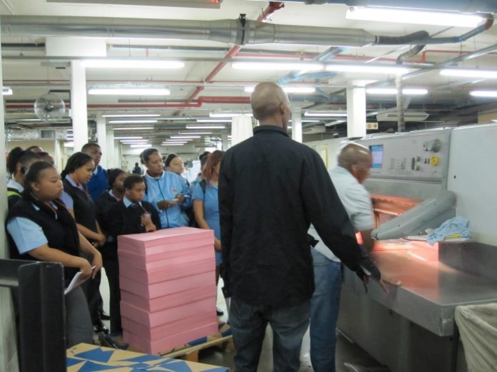 Pupils from Riverlea Secondary, CJB Secondary, Corrie Secondary, Westbury Secondary and Die Burger Hoërskool took part in the Unisa Educational Day and got to ask employees in the Print Production plant about aspects of their jobs, the printing industry itself and what qualifications they need to work in the industry.