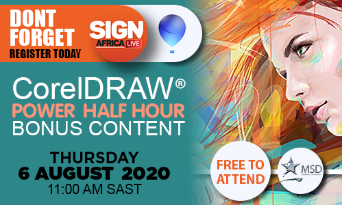 Sign Africa LIVE and CorelDRAW Master Mo Jogie will present a free CorelDRAW Graphics Suite Power Half Hour online filled with bonus content this Thursday, 6 August at 11am.