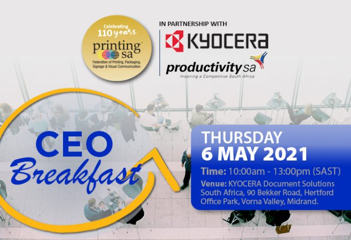 Printing SA’s free CEO breakfast will take place at the Kyocera South Africa offices and live streamed via YouTube. Anyone is welcome to join online.